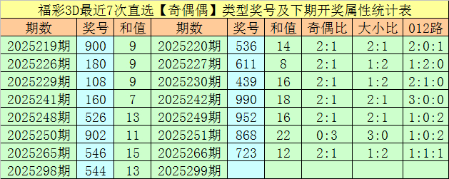 开奖回归:福彩3D第2025298期开奖号码为544,奖号直选类型为:奇偶偶、大小小和211路。