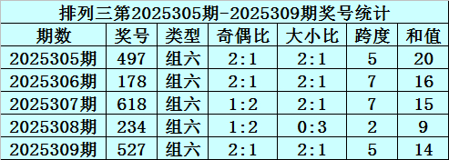 组选类型判断:最近5期陈设三开出3次组六号码,本期要点宥恕组六号码出现。