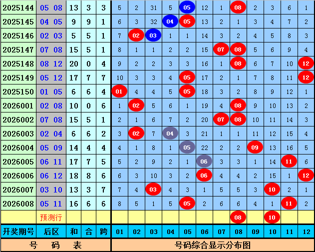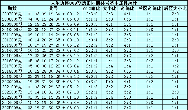 后区判断:后区第009期历史同时奖号大小比总比例为4:15,大号热出,本期瞻望大号不时热出,防全大,参考两码08、10。